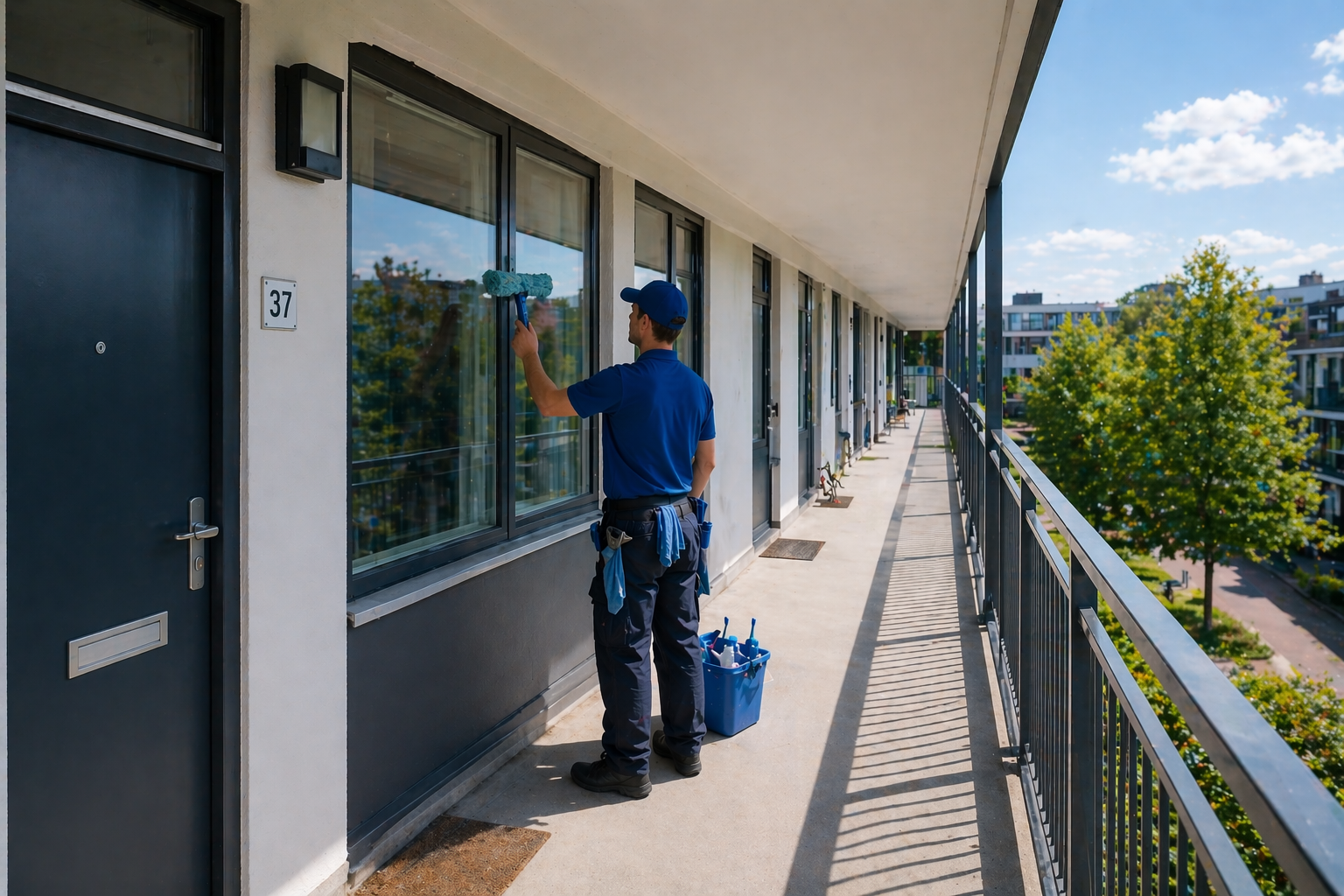Met het periodiek schoonmaken van de galerijen blijft alles schoon, veilig en verzorgd — precies zoals bewoners en beheerders het verwachten.