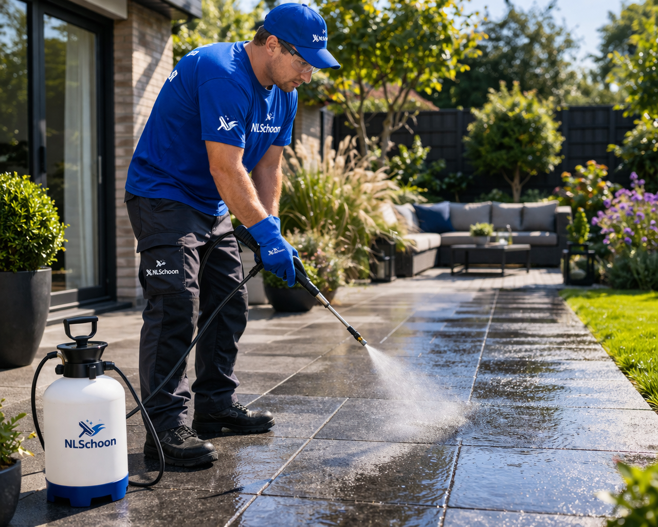 Na het reinigen van buitenoppervlakken kan gekozen worden voor een nabehandeling of sealer. Dit is geen verplicht onderdeel, maar een aanvullende optie om het schone resultaat langer te behouden.